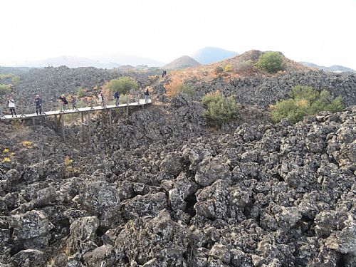 Bir bölümü göz alabildiğine volkanik lavların oluşturduğu çok büyük bir alandı. İlk önce burayı gezdik. Bol bol fotoğraf çektik. Bu alanda ondan fazla volkan konisi varmış .Biz iki patlamamış volkan konisi gördük. Volkanik döküntülerin üzerinde bulunan ahşap yürüyüş yolunda keyifle yürüdük.